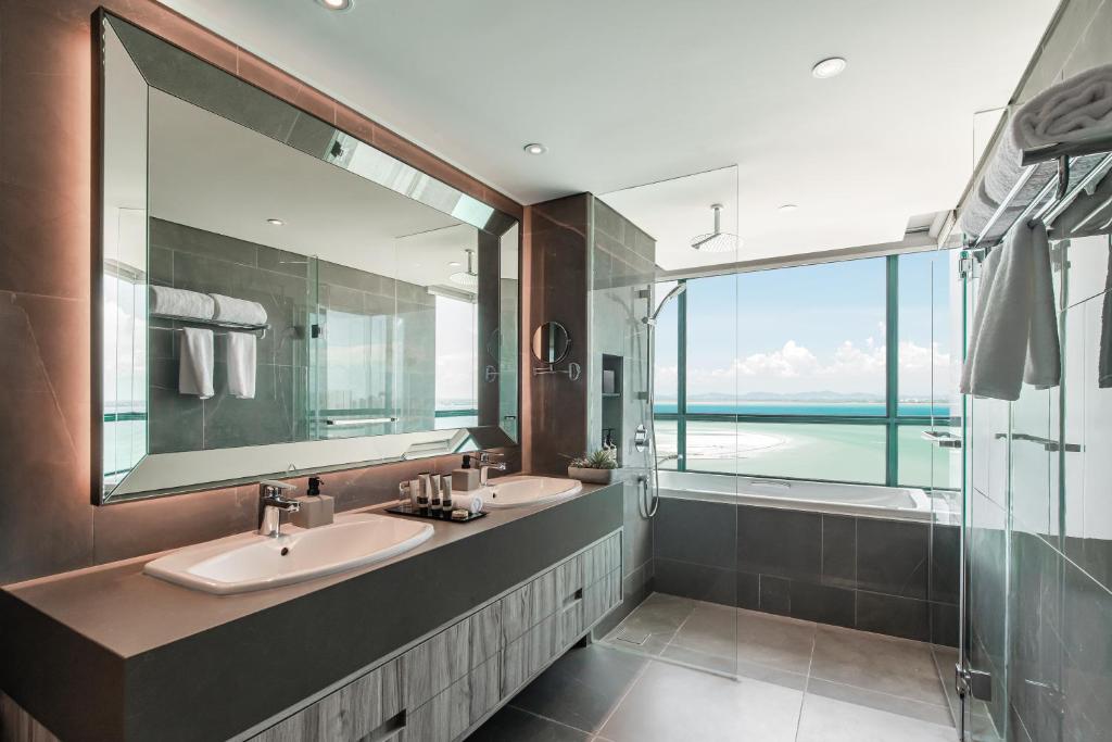 The Ascott Gurney Penang is a Penang hotel located on Gurney Drive. There is an infinity pool and a restaurant right there for visitors to enjoy. All areas of the resort provide free WiFi. With its convenient location between the Menara Gurney Offices and the Ascott Gurney Penang, Gurney Walk is a retail development that offers a wide variety of dining options, cafés, specialty stores, and more. Gurney Plaza and Gurney Paragon are 1.1 kilometers away. Fort Cornwallis, the Queen Victoria Memorial Clock Tower, and St. George’s Anglican Church are all within 3.5 kilometers of the property. Penang International Airport, the closest airport, is located 21 km away from the property. Selected hospitals are served by the property’s free scheduled shuttle service. A safe, an electric kettle, and an LCD TV are all standard in the air-conditioned rooms. In addition to having a kitchenette, some apartments have views of the ocean. The en suite bathrooms include with complimentary amenities and a bathtub. Daily restocks of complimentary bottled water are provided. We have ironing facilities available. The front desk is open around the clock to assist guests with making tour reservations, providing concierge services, and storing their baggage. The resort also has banquet and conference space, as well as a sauna area. There is a wide selection of restaurants and shops in the neighborhood that guests may peruse. As an alternative, you may visit the on-site Samsara Spa for massages and other spa services. On the ground level, visitors can find the in-house coffee shop, where they can have lunch and supper served by Halal chefs from across the world. In the mornings, they may have a buffet breakfast.