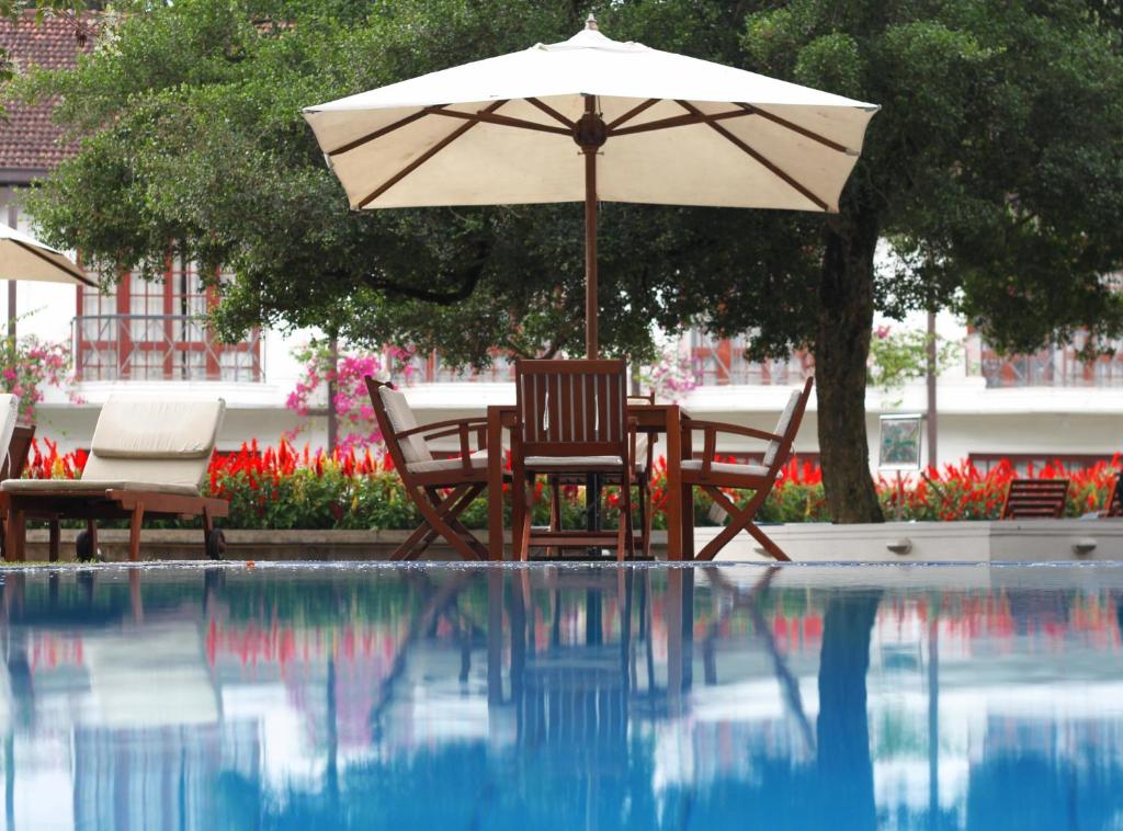 With the majestic Mahaweli Mountains in the background, guests of the 5-star Mahaweli Reach Hotel may relax on the riverbanks. It has a fitness center, a high-end Ayurvedic spa, and a huge outdoor pool. Each air-conditioned accommodation has a balcony where you can take in the breathtaking scenery of the tropical gardens. Classic wood furniture and floors, along with cable TV, are standard in these rooms.Indulge in a soothing Ayurvedic massage after a strenuous tennis session. In addition to its corporate services, this hotel offers bicycle rental, water sports, and more.The restaurant offers live entertainment in addition to hearty meals showcasing Sri Lankan specialties.Colombo International Airport is around three hours away, whereas Victoria Golf Course is only thirty minutes away from Hotel Mahaweli Reach.