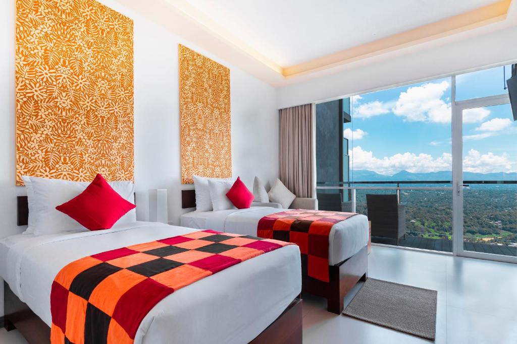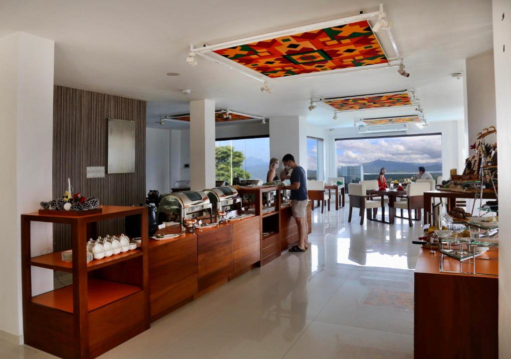 With a prime location in the heart of Kandy, the air-conditioned rooms at Mount Blue Kandy provide complimentary WiFi, private parking, and room service. The 4-star hotel offers river views from every room, as well as a garden and an outdoor pool. Airport transfers are provided by the property, and guests also have the option to hire a vehicle.Each room at this hotel comes with its own private bathroom, flat-screen TV, closet, bed linens, towels, and a balcony that overlooks the mountains. A safe deposit box is available in each room, and you can even get rooms with views of the pool if you book one of them. Guests will find a minibar in each accommodation.You may have American, Chinese, and Indian food at the restaurant in Mount Blue Kandy. Additionally, you have the option to order dairy-free, halal, or vegan choices.There is a patio at the lodging. Mount Blue Kandy is a popular spot for cyclists and hikers, and it also has a dartboard.Just 3.9 miles separate the hotel from Bogambara Stadium, whereas the 4 km separate it from Kandy City Center Shopping Mall.