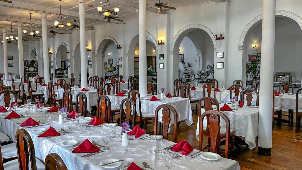 Situated only 50 meters from Kandy Lake, the Queen’s Hotel occupies a historic edifice. Guests may enjoy colonial-style accommodations, an outdoor pool, three restaurants, and complimentary parking.The rooms are roomy, with oak furniture and big windows. A minibar, coffee/tea makers, and television are standard in all of the guestrooms. The private bathroom comes with a hot shower.To help you plan your trip and explore the attractions, the tour desk is there to help. You may arrange for airport shuttle service and car rental services when you need them.All day long, you may enjoy the traditional local cuisine at Queen of Hearts Restaurant. At the Pub Royal and Lounge Bar, you may get light food and drinks to quench your thirst.The Temple of Tooth Relic and Udawattekele National Forest Reserve are both within 950 meters of Hotel Queen’s