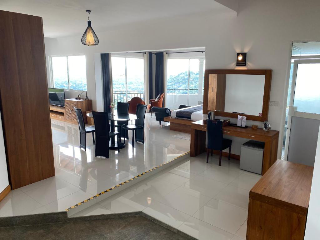 Sacred Tooth Relic and the Ceylon Tea Museum are both 2 km and 1.2 km apart, respectively, from the Kandy mansion known as The Heaven’s mansion Kandy. Air conditioning and complimentary WiFi are standard amenities in the villa. Onsite private parking is free.There is a dishwasher in the kitchen. This self-catering accommodation comes with towels and bed linen. Each room has a view of the city.The Heaven’s Villa Kandy is situated 2.4 km from Kandy City Center Shopping Mall and 2 km from Bogambara Stadium. Just 88 miles distant is Bandaranaike International Airport.
